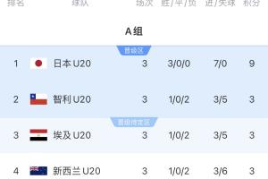 A组比赛全部结束,日本三战全胜进7球0丢球,以小组头名出线。
