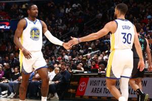 勇士本场首发如下:库里、波杰姆斯基、理查德、库明加、霍福德。